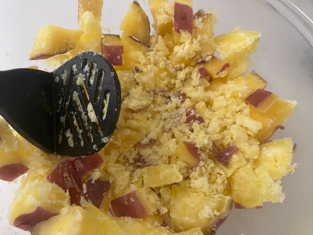 熱いうちに 1/3ぐらいを粗く潰す