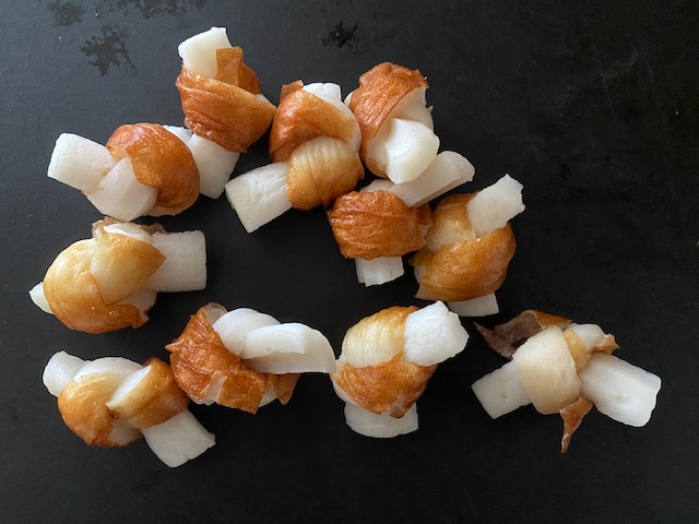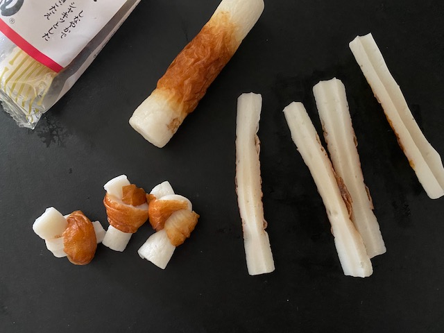 今回はちくわを結んでいます