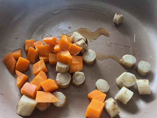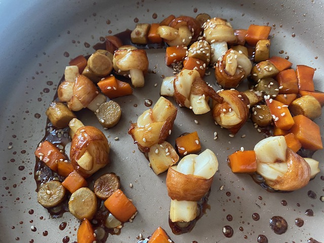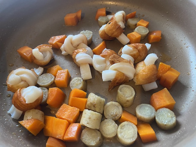 加熱したごぼうと人参を入れ炒める