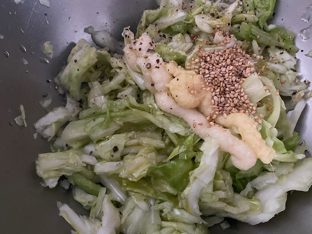 香ばしい風味がクセになるごまとキャベツのサラダが