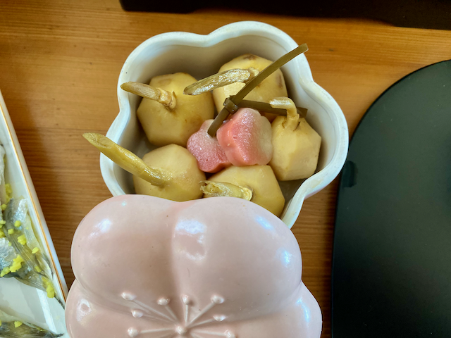縁起が良いと言われるひょうたん型の生麩を添えました