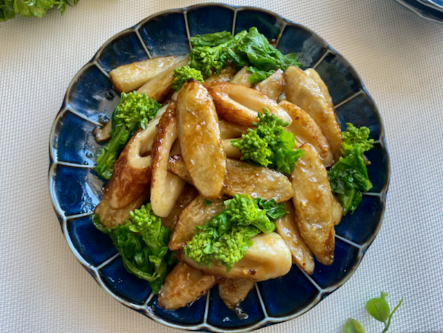 ちくわは3等分に切り 菜の花はさっと茹で食べやすい大きさに切る
