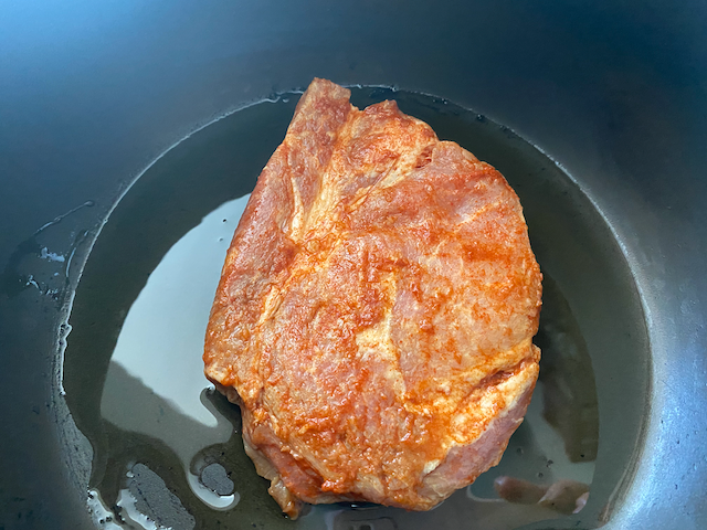 マリネした豚ロース肉の両面を焼き一旦取り出し