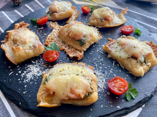 【油揚げとお餅の明太ピザ】が
