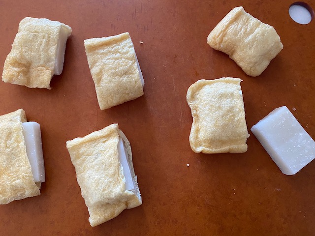 お餅を油揚げの中に入れ