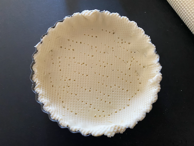 ①型にパイ生地をのせ そこの部分にフォークで穴を開ける