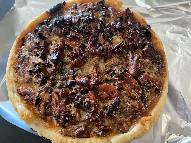 遅れてきたのでって言って手作りピーカンパイを持参します