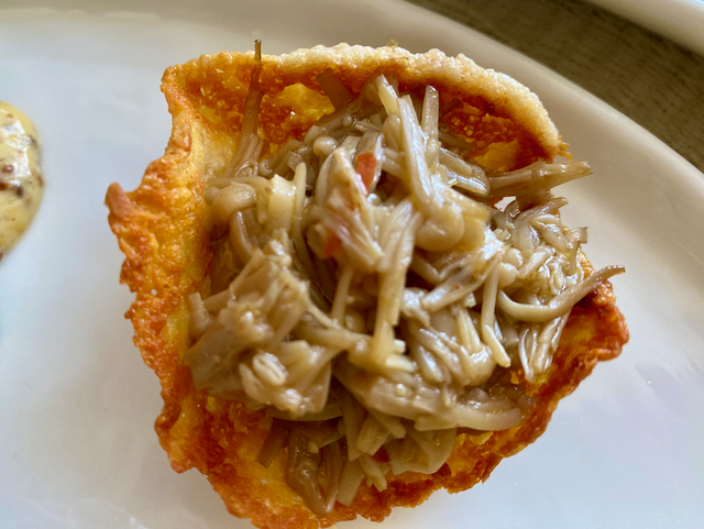 チーズバスケットにのせたイタリアンな なめ茸