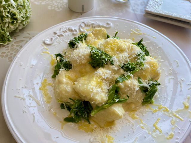 ③器に盛り付け 菜花を添え 残りのパルミジャーノ