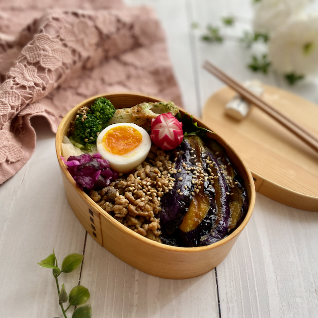 しそは下に敷いていて なすと肉味噌は別もりにしました