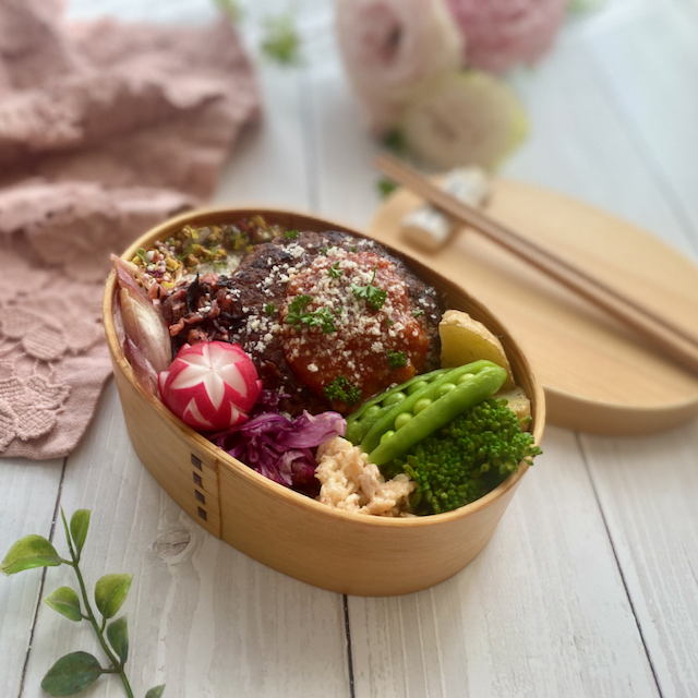 ラディッシュの飾り切りとご飯にはカラフルふりかけを散らしました