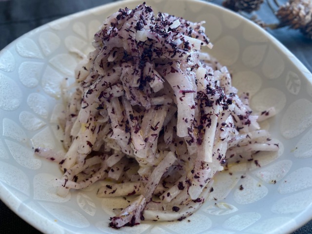 ゆかりと合わせてほんのり紫色の大根レシピ