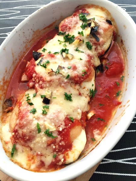 残った茄子を細かく切り モッツァレッラとパルミジャーノをふったら