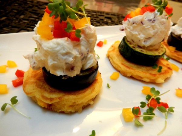 パルミジャーのたっぷりのふわふわパンケーキのカナッペ