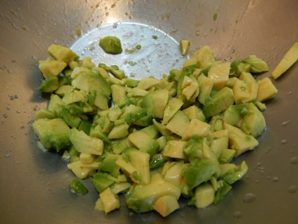 ☆アボカドは熟したものを選び つぶつぶ感を残すぐらいの大きさに切ります