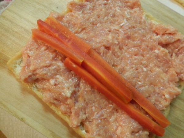 中心には 京人参 もう一つは小松菜をのせ巻いています