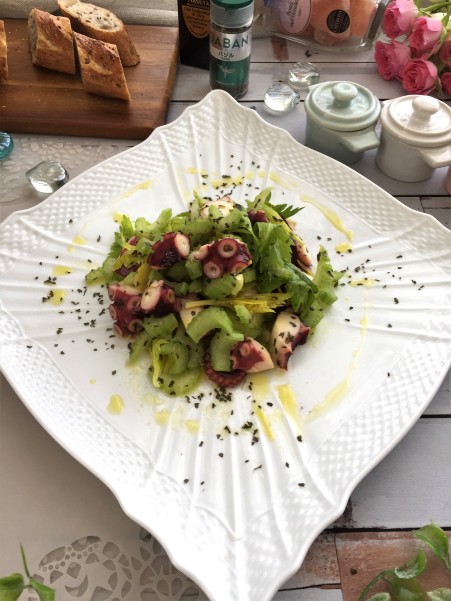 バジルさわやか~タコとセロリのサラダ 2019年05月23日 セロリが好きです~ただ刻んでオイルをかけたシンプルサラダやステックサラダなど~今日は タコも加えてちょっぴり豪華~タコと違った食感のセロリのシャキシャキ感とバジルのさわやかな香りがおいしいですまずタコですが 茹でや蒸しダコを使いますが鍋に セロリの葉っぱ ... 続きを読む